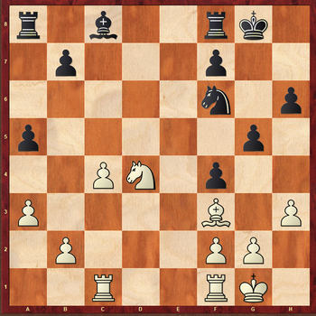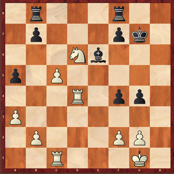 19...Kg7 20.Nb5 h5 21.Nd6 Rb8 22.Rfd1 g4 23.hxg4 hxg4 24.Bd5! Упускало перевес 24.Be2? ввиду 24...Be6 и черные в порядке.