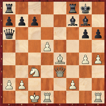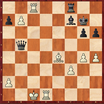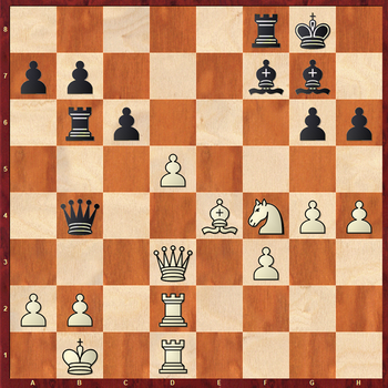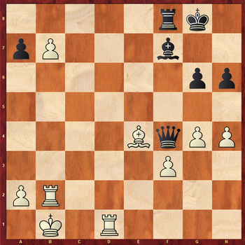 27...Qd6! 28.dxc6 Qxf4 29.cxb7 Rxb2+ 30.Qxb2 Bxb2 31.Rxb2 У черных серьезный материальный перевес, но нужно очень внимательно следить за пешкой b7. Несмотря на компьютерную оценку выиграть эту позицию черными отнюдь не пустяковое дело.