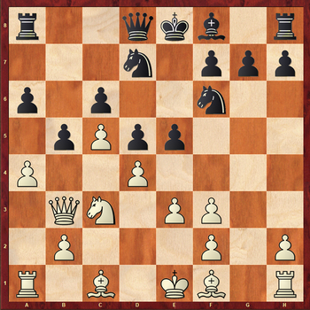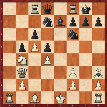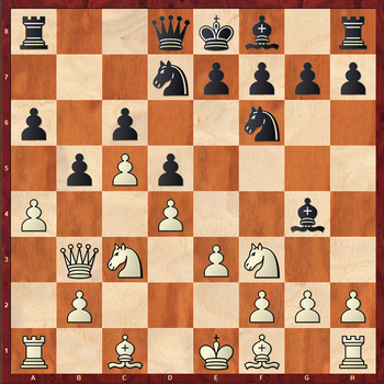 10...exd4 11.exd4 Be7 12.Nb4 Rc8? Лучше 12...Qc8 13.axb5 axb5 14.Rxa8 Qxa8 15.Bh3 0–0 16.0–0 Qb7 с худшей, но все еще обороноспособной позицией.