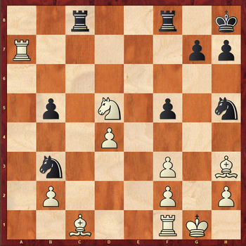 21.Bg5 В результате форсированного варианта, белые выиграли фигуру и легко доводят партию до победы.